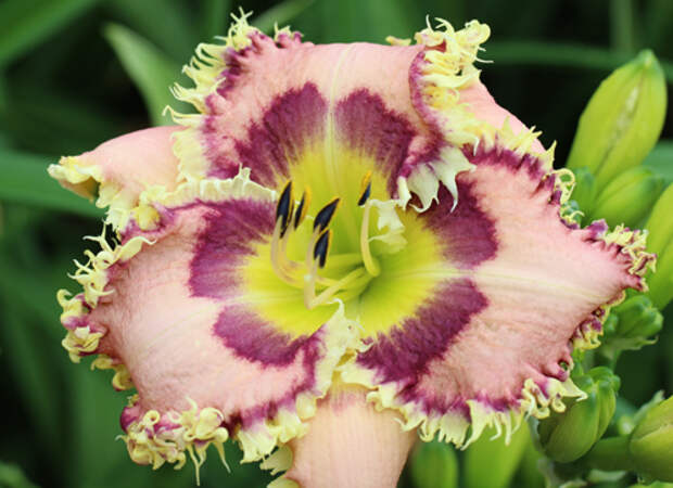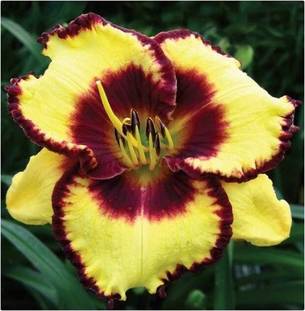 - лилейники с контрастной зоной (окрашен центр цветка, средняя жилка, край долей околоцветника и пликата).