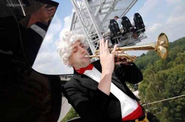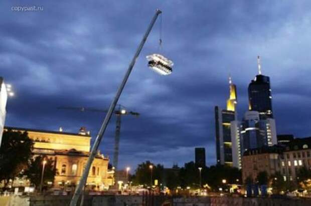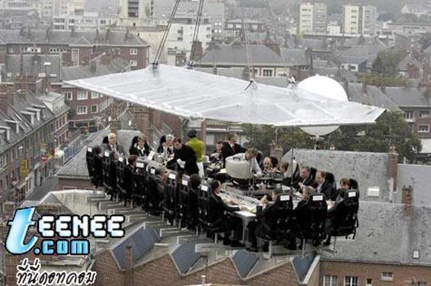 Пообедать в воздухе будет стоить вам 7.900 евро, сюда войдет установка крана, обед и услуги по охране. Вес стола: 5.000 кг