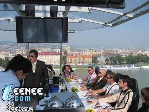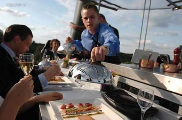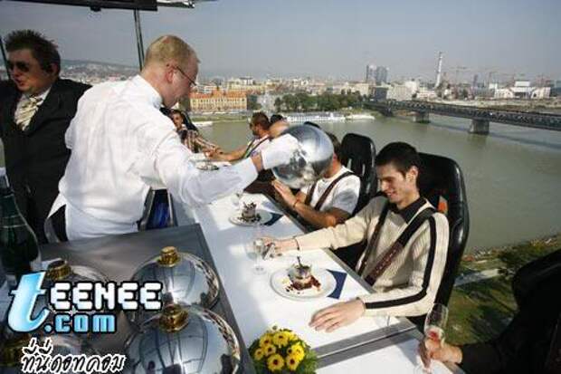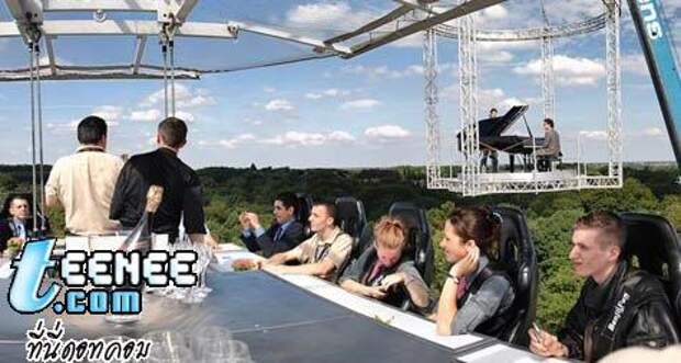Пообедать в висячем ресторане Dinner in the Sky на высоте 50 м уже можно во многих мировых столицах. Висячий стол одновременно вмещает 22 человека.