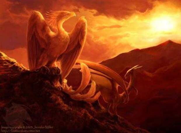 Как ни странно, здесь Феникс начал эволюционировать в другом направлении – не качественно, а количественно. Если быть точнее, фениксов у словян было целых два: Финист Ясный Сокол, и Жар-птица. Несмотря на то, что первый был зорким и смелым красным молодцем, периодически превращающимся в птицу, а вторая внешне напоминает павлина, они имеют много сходных черт: Жар-птица осенью умирает и весной возрождается, а Финист засыпает беспробудным сном и после зимней спячки просыпается. Кроме того, Жар-птица была в буквальном смысле огенной, и прекрасно пела – как и Феникс.