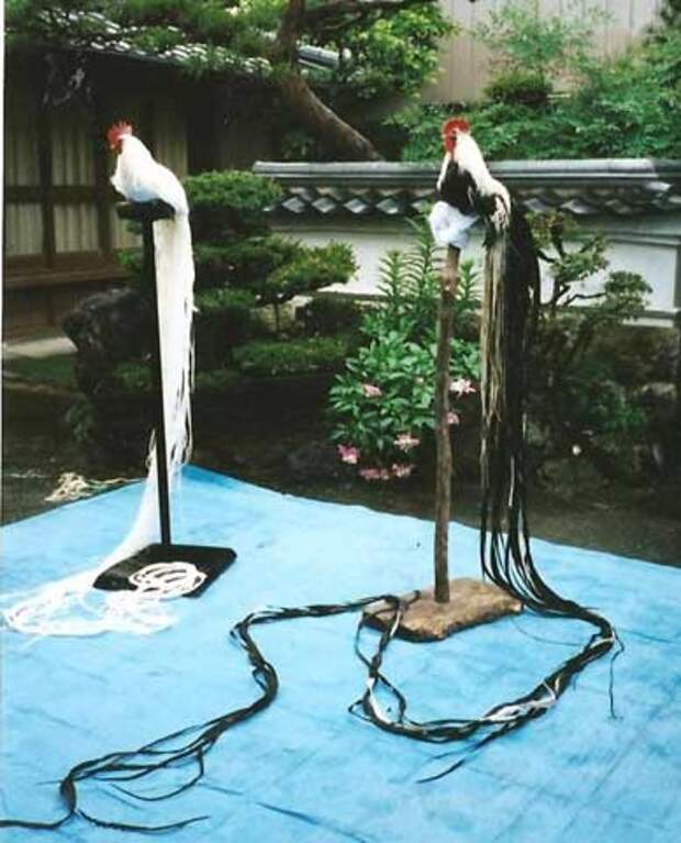 Так, куриные хвосты удлиннились почти в 10 раз (до 13 метров). Как говорится, в стремлении к красоте главное не переборщить, чего японцы явно не уловили шестым чувством. Курятник таких «фениксов» – это высокий шест, и слезать с него птицы не должны, иначе их хвост превратился бы в облезлый веник. Фен-шуй, конечно, фен-шуем, но один из его главных талисманов удачи, онадагори – это курица в камере-одиночке, страдающая гиподинамией и нарушением обмена веществ. Ну ничего. И люди тоже когда-нибудь это перерастут. А вот символ феникса – останется.